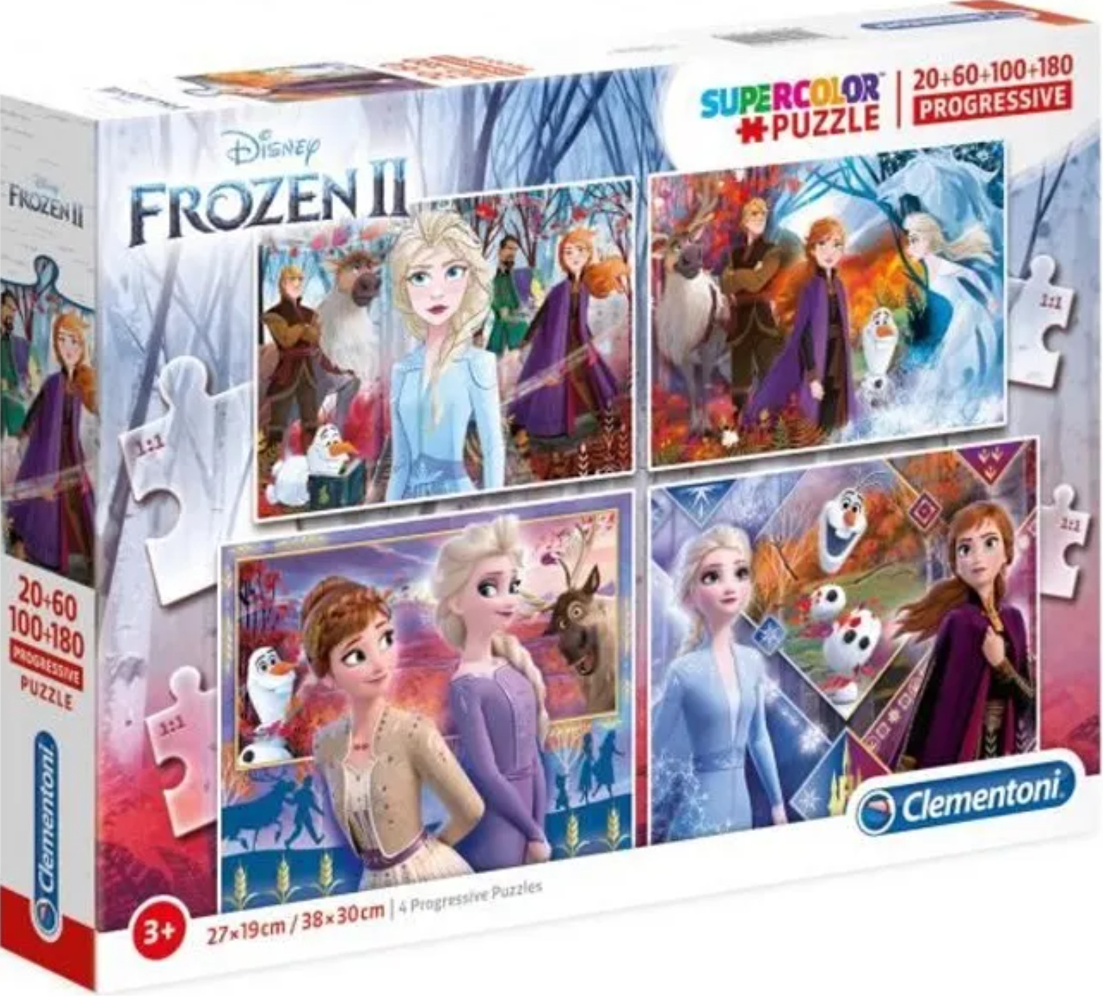 4 puzzles Progressifs la Reine des Neiges : Elsa Anna Olaf Sven 20 - 60 - 100 - 180 pièces - Clementoni 21411