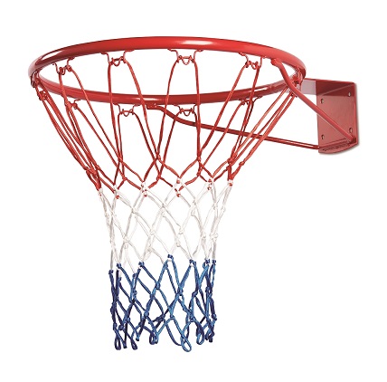 Anneau de basket avec filet et fixations.