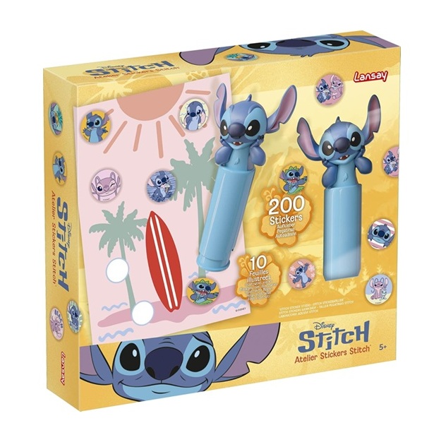 Contenu :1 tampon à stickers Stitch, 200 stickers, 10 feuilles illustrées à compléter.