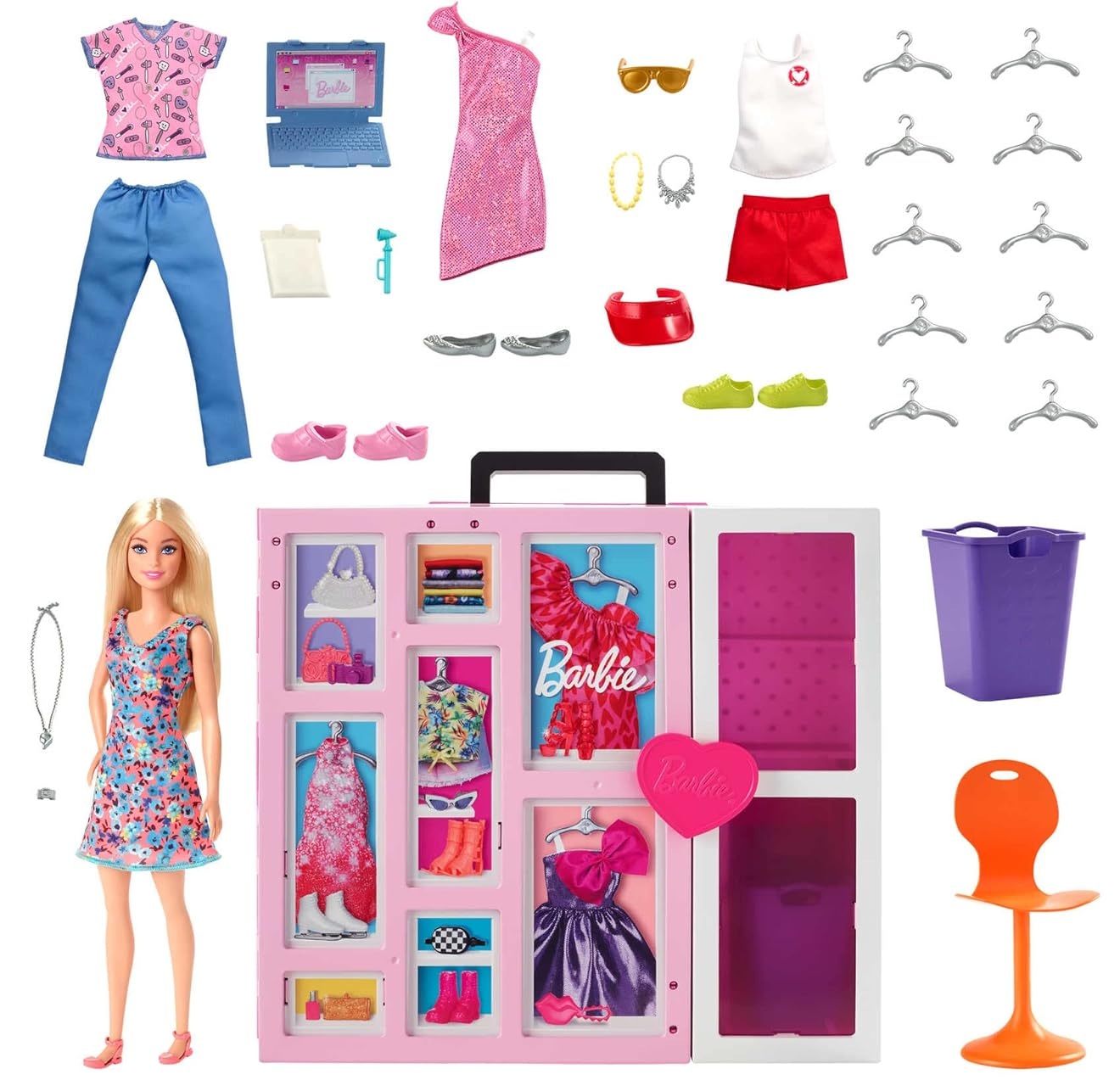 Barbie maison : le dressing transportable + accessoires - habits - vêtement - 1 poupée mannequin - 35 éléments - Mattel - hgx57