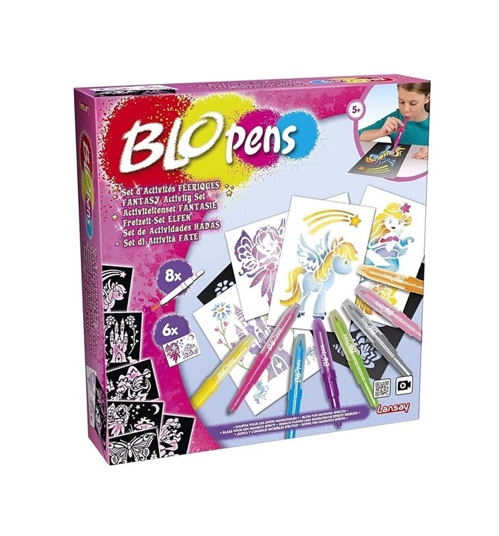 Blopens Set d'activités féériques : fées, licornes, sirènes - Aérographe - Lansay - Feutres, pochoirs