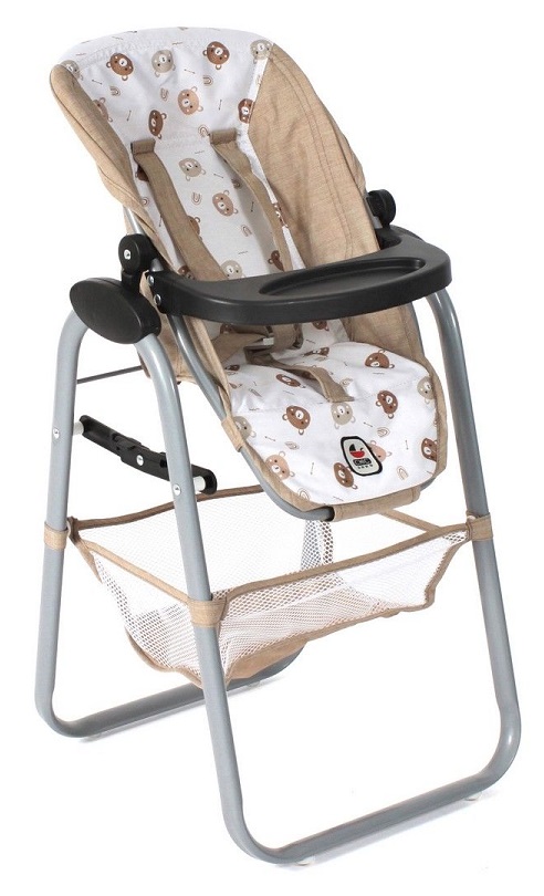 Pour que la poupée puisse aussi s’asseoir à table et prendre ses repas, la petite maman pourra désormais l’installer dans cette très jolie chaise haute imprimée d’adorables oursons. Avec tablette et harnais de sécurité, comme les vraies !