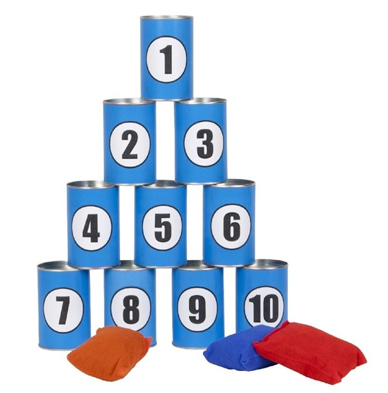 Jeu de casse-boîtes, massacre, chamboule tout… Ce jeu d’adresse traditionnel saura égayer vos animations, fêtes et kermesses. Il comprend 10 boîtes en métal numérotées de couleur bleue et 3 sachets en tissu.