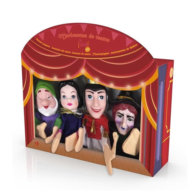 Coffret 4 Marionnettes Blanche-Neige et les 7 Nains - Contes Classiques - Jeu Imagination, Theatre enfant