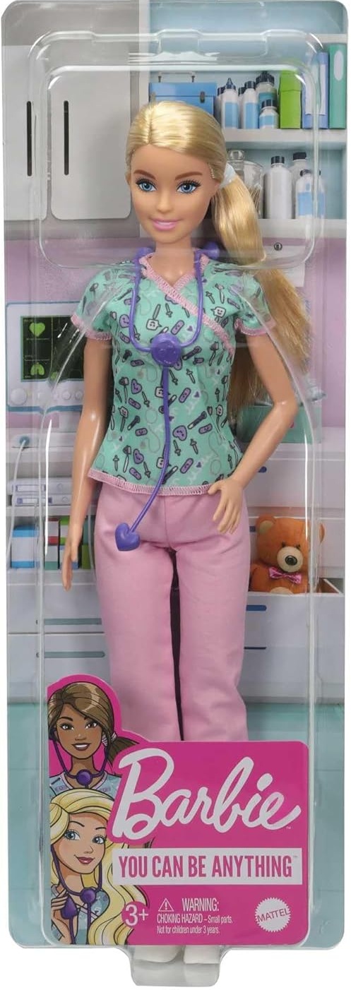 Explorez le monde des soins avec la poupée Barbie infirmière ! Avec Barbie, les enfants peuvent être tout ce qu’ils veulent, alors pourquoi ne pas devenir infirmière quand on aime aider et prendre soin des autres ? Cette poupée Barbie infirmière porte une adorable blouse d’infirmière à motifs d’instruments médicaux, un pantalon rose et des chaussures blanches, ainsi qu’une queue de cheval soignée.