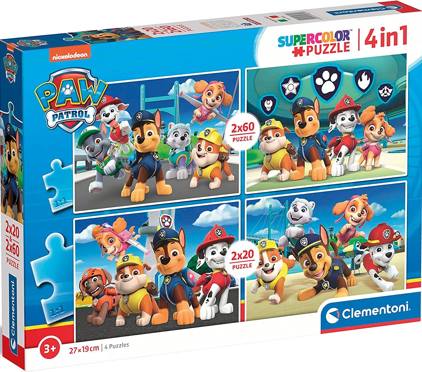 Coffret de 4 puzzles enfant Pat Patrouillle chien en mission 2 x 20 pièce et 2 x 60 pièces - Clementoni - 24801