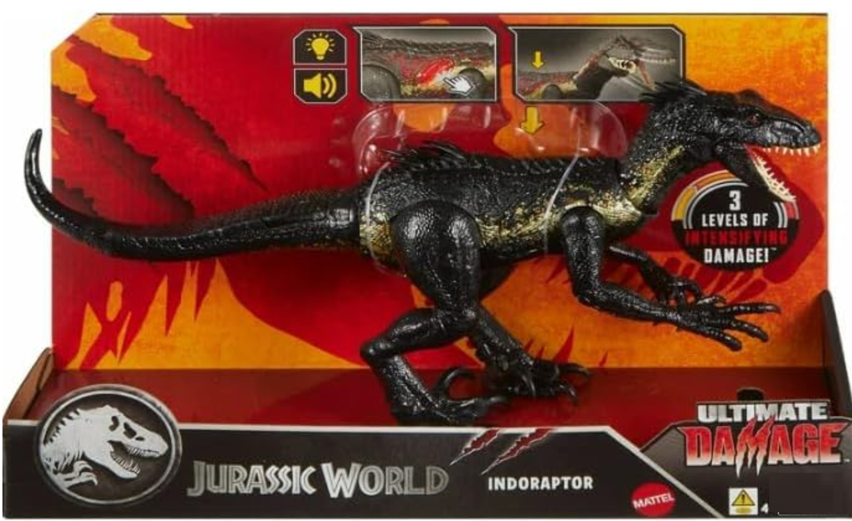 Coffret Dinosaure Indoraptor avec son et lumière - Ultimate Damage - Dino articulé 40 cm - Jurassic World - Mattel
