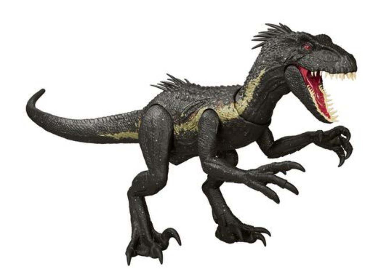 Cet Indoraptor unique et intimidant dispose de 3 fonctions d’attaque et d’effets sonores et lumineux. Il arbore d’énormes griffes typiques de ce dinosaure hybride et des décorations inspirées de la jungle avec un effet irisé.