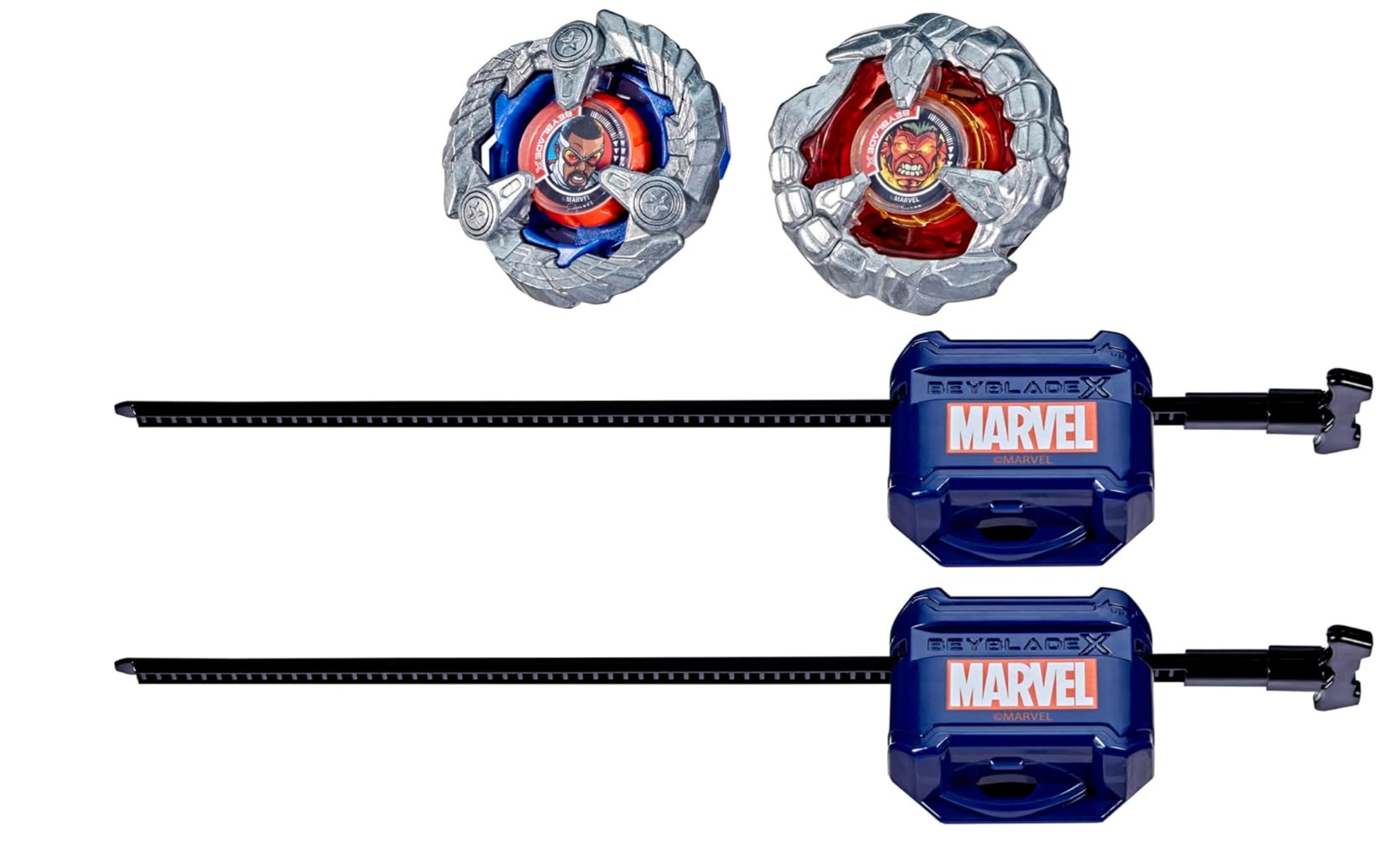 Coffret Pack 2 Toupies Beyblade X : Captain America 4-70GB Contre Red Hulk 1-80R - Type endurance et attaque - Pack Toupie et lanceur - Hasbro G1690