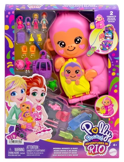 Coffret Polly Pocket Sac surprises Maman singe et son bébé - Mattel - HWP04 - Mini univers poupée, animaux