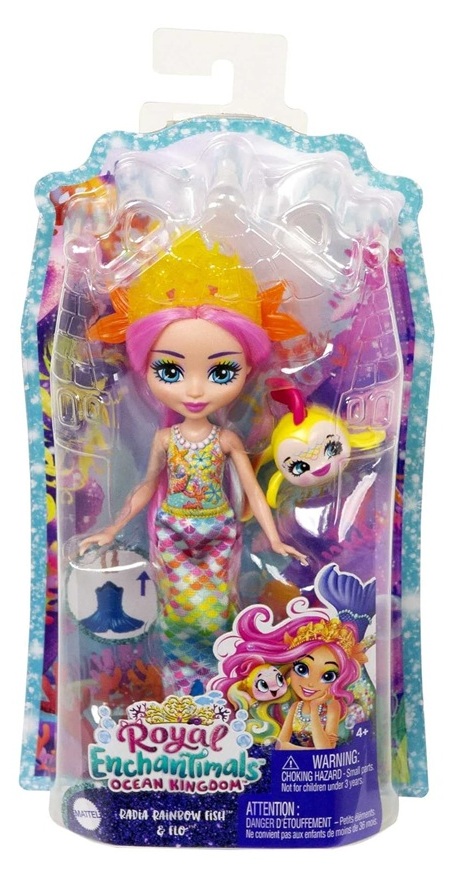 Enchantimals Royaume de l'Océan : Poupée Radia Poisson Arc en ciel 15 cm et Flo - Figurine Animal, Accessoires - Mattel - HCF68