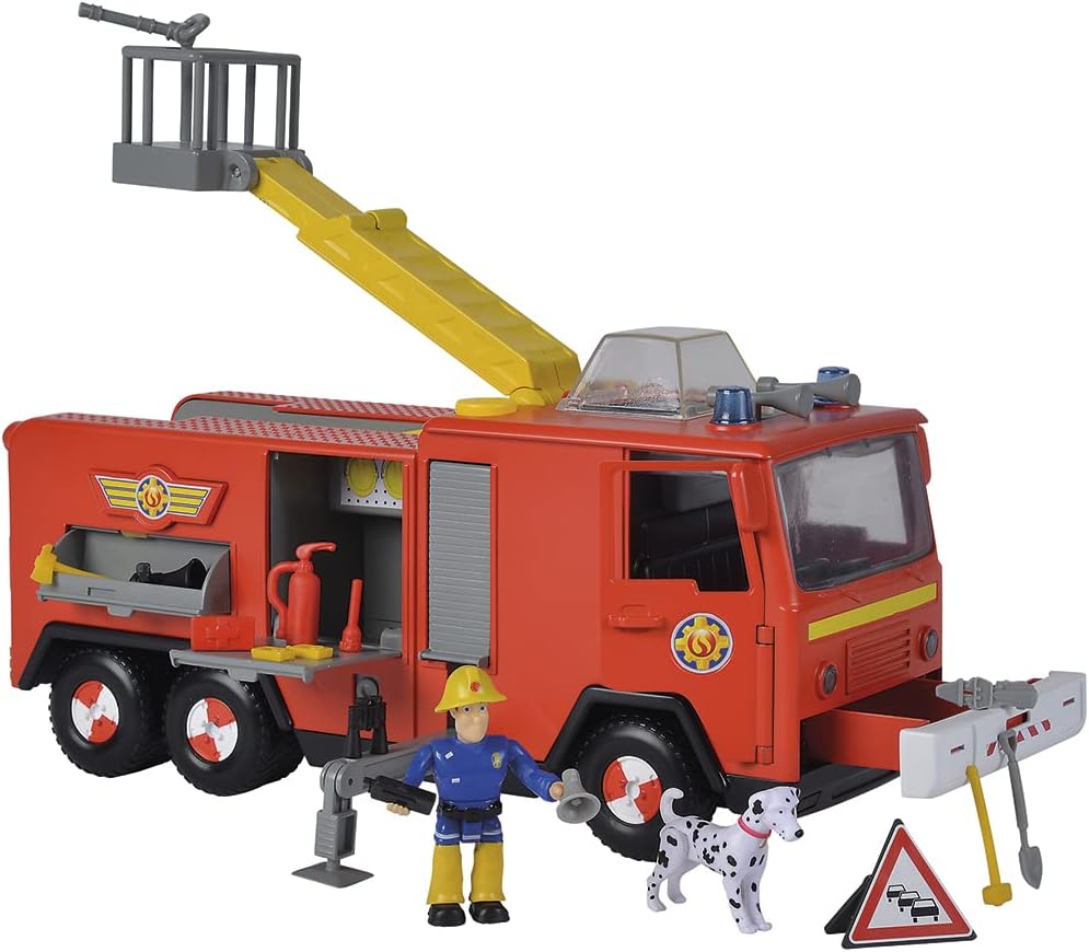 Comprend : Le camion de pompier Jupiter, une figurine articulée représentant Sam, une figurine et de nombreux accessoires sont inclus dont des plots, une pelle, un mégaphone