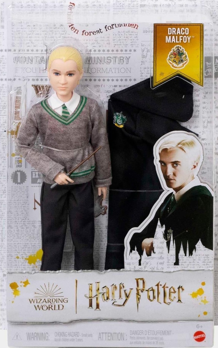 Harry Potter Drago Malefoy en tenue de sorcier Serpentard avec baguette - Poupée mannequin - Mattel HMF35