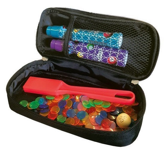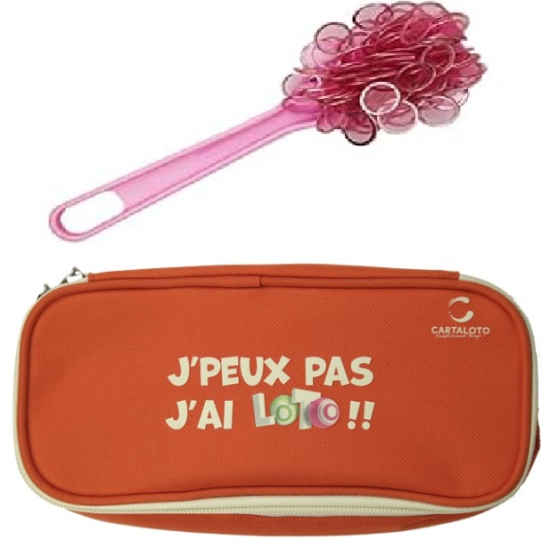 Indispensable ! Ce kit complet permet d’avoir sous la main vos accessoires de loto et bingo dans une trousse pratique et original au message imprimé "J'peux pas J'ai loto".