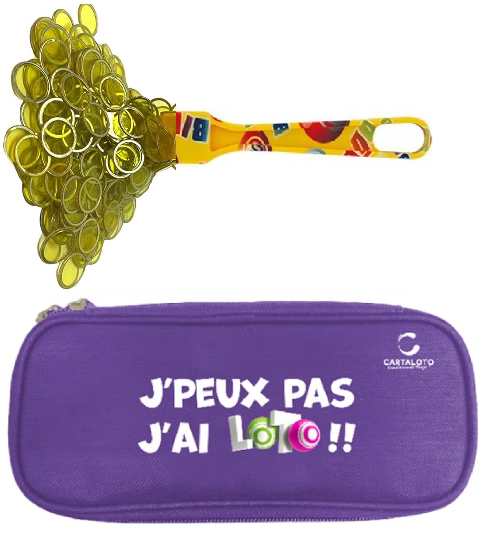 Kit loto bingo 3 en 1 : trousse Violet + baton magnetique jaune + 100 pions - Cartaloto - accessoires jeu, materiel