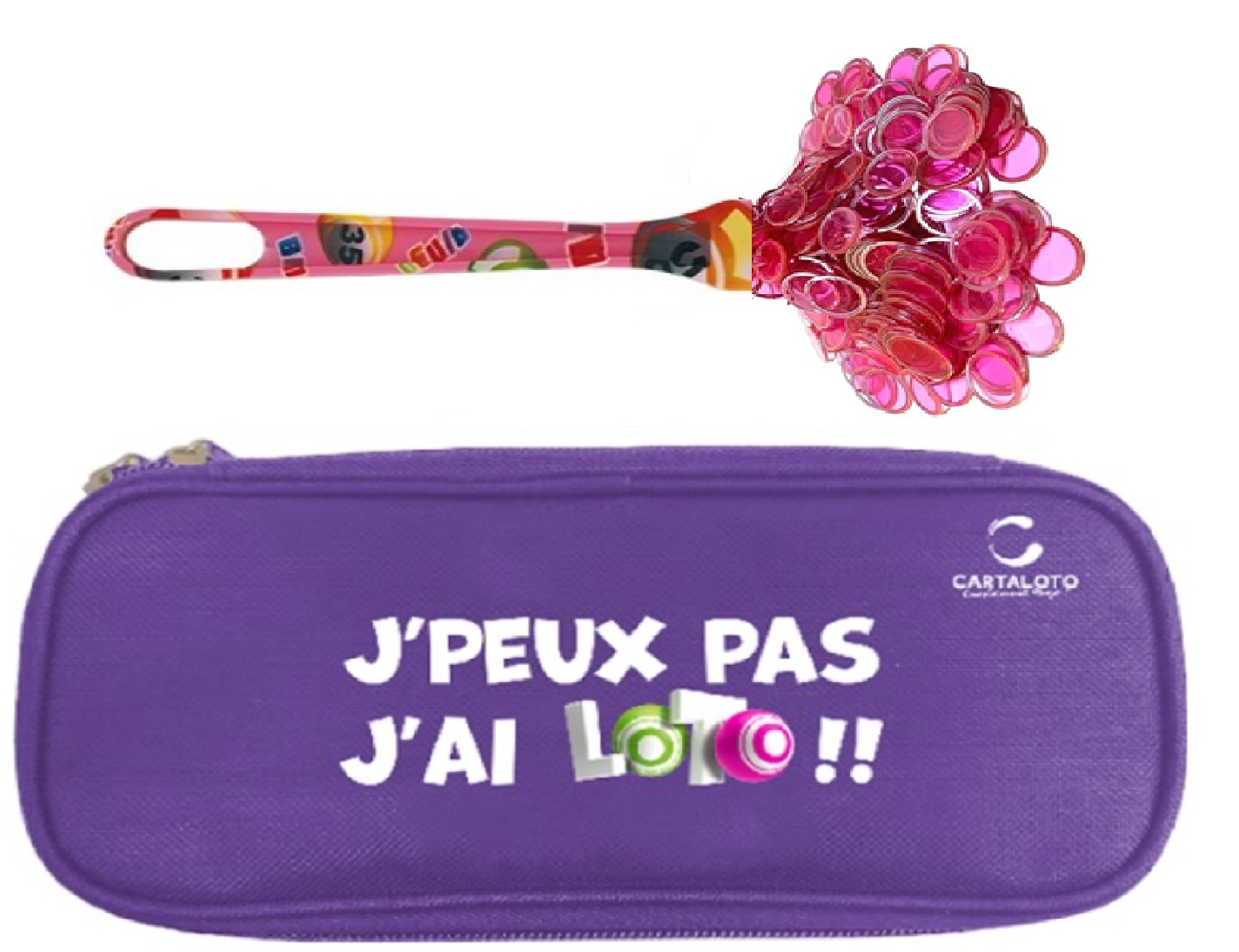 Kit loto bingo 3 en 1 : trousse Violet + baton magnetique rose + 100 pions - Cartaloto - accessoires jeu, materiel