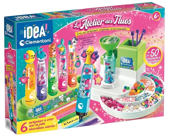L'atelier des Fluos, 6 surligneurs à créer - Idea Clementoni - 52848 - Coffret créatif stylos, feutres