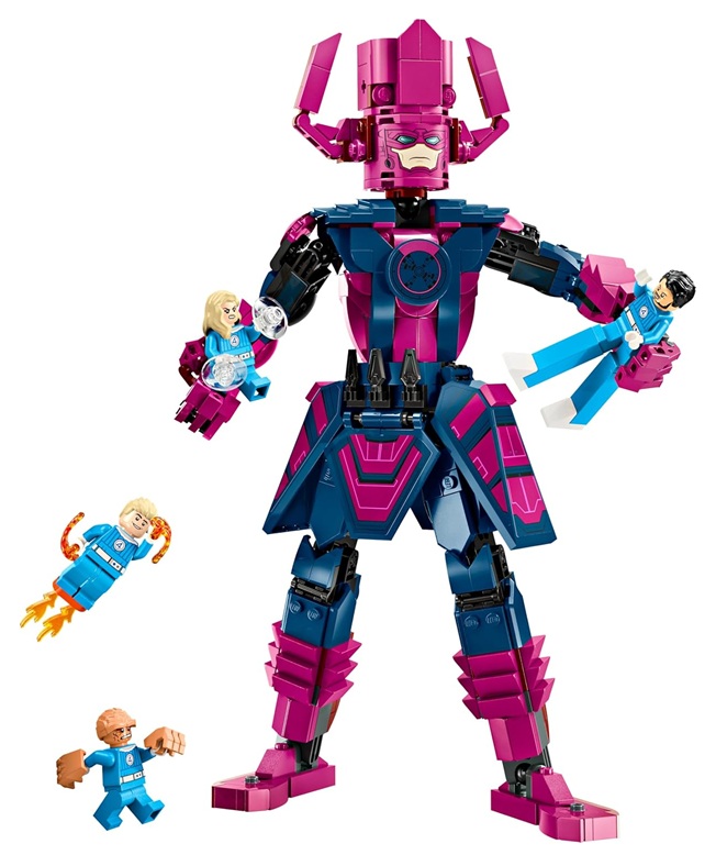 - Les minifigurines incluent Mr Fantastique avec des jambes élastiques, la Torche humaine avec 2 blasters, des flammes à ses pieds et un support transparent pour ″voler″, la Femme invisible tenant 2 champs de force, et la Chose avec ses grandes mains puissantes.