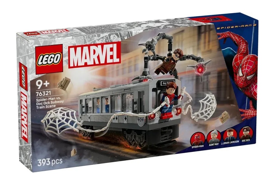 - Spider-Man possède deux têtes interchangeables (masquée ou non) et une grande toile qui se fixe sur le train. Dr Octopus a 4 tentacules articulés, dont 2 avec des ″rayons laser″ et 2 avec des pinces qui se fixent sur le train.