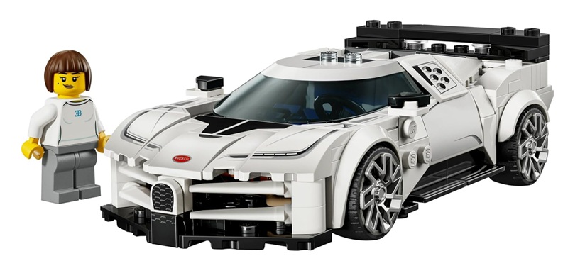 - Une minifigurine de pilote en combinaison Bugatti est incluse.