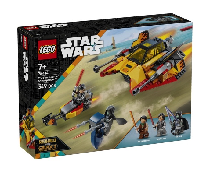 - 2 véhicules en 1 : le Snowspeeder en flammes s’orne d’autocollants flammes et est doté d’un fusil à tenons à l’arrière et d’un double cockpit qui s’ouvre avec un Speeder Bike dissimulé amovible. Le Snowspeeder mesure plus 5 cm de haut, 17 cm de long et 13 cm de large.