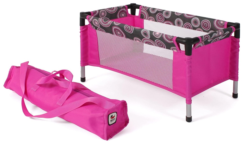 Ses 2 côtés en maille filet permet de garder le contact visuel, rassurant pour la poupée comme pour ses petits parents.
