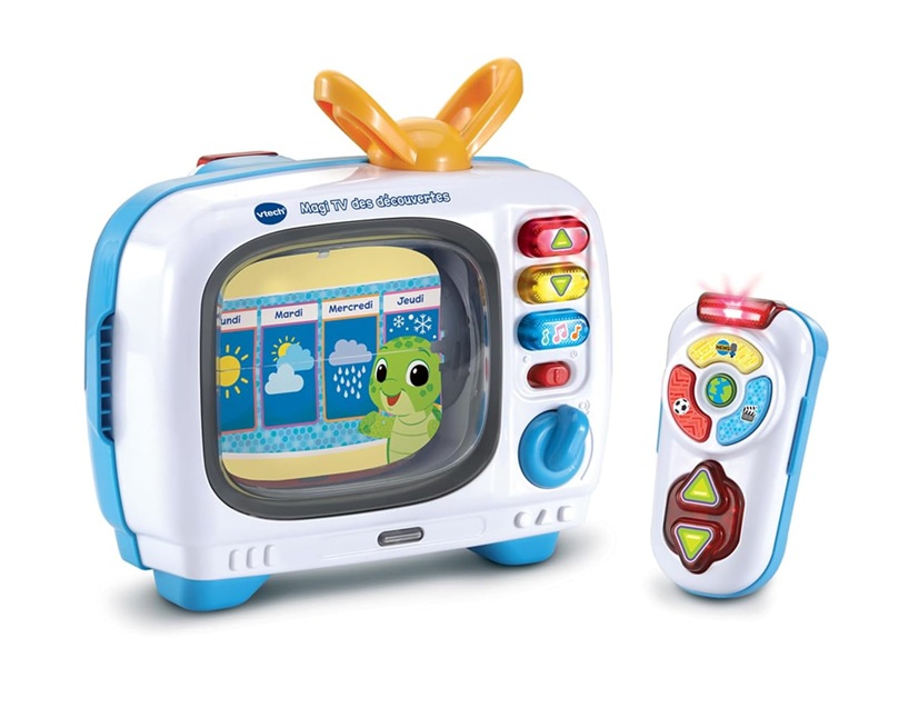 Une télévision interactive et musicale accompagnée d’une télécommande magique pour zapper comme les grands !