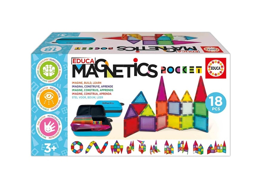 Mallette 18 pièces magnétiques, blocs construction - Magnetics Pocket - Educa - 20271 - Panneaux, Tuiles