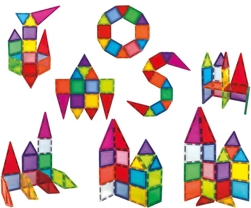 Les enfants peuvent réaliser des constructions à l’infini en 2D et en 3D, laissant libre cours à leur imagination et à leur créativité grâce à la diversité des formes, des couleurs et à leur facilité de manipulation.