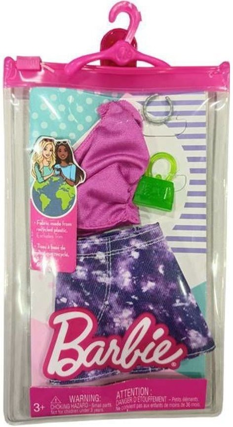 Mattel - hjt19 - habit barbie - accessoire poupee - jupe violet + sac a main + collier - vetement poupee