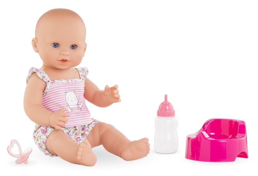 Emma fait pipi est votre alliée pour l’apprentissage de la propreté ! C’est un grand poupon Corolle sexué fille qui boit son biberon, fait pipi "pour de vrai" quand on appuie sur le ventre et prend son bain.