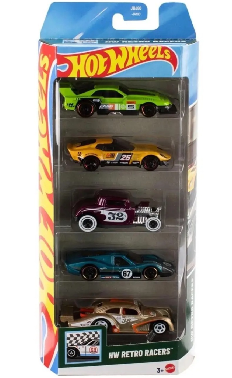 Pack de 5 véhicules Hot Wheels : Retro Racers - Mattel - JBJ86 - Set voitures miniatures