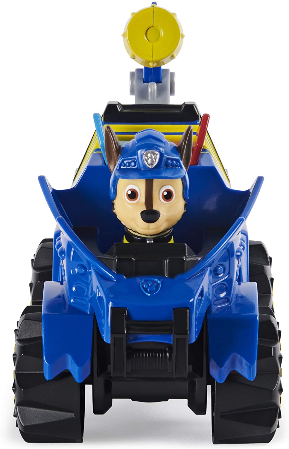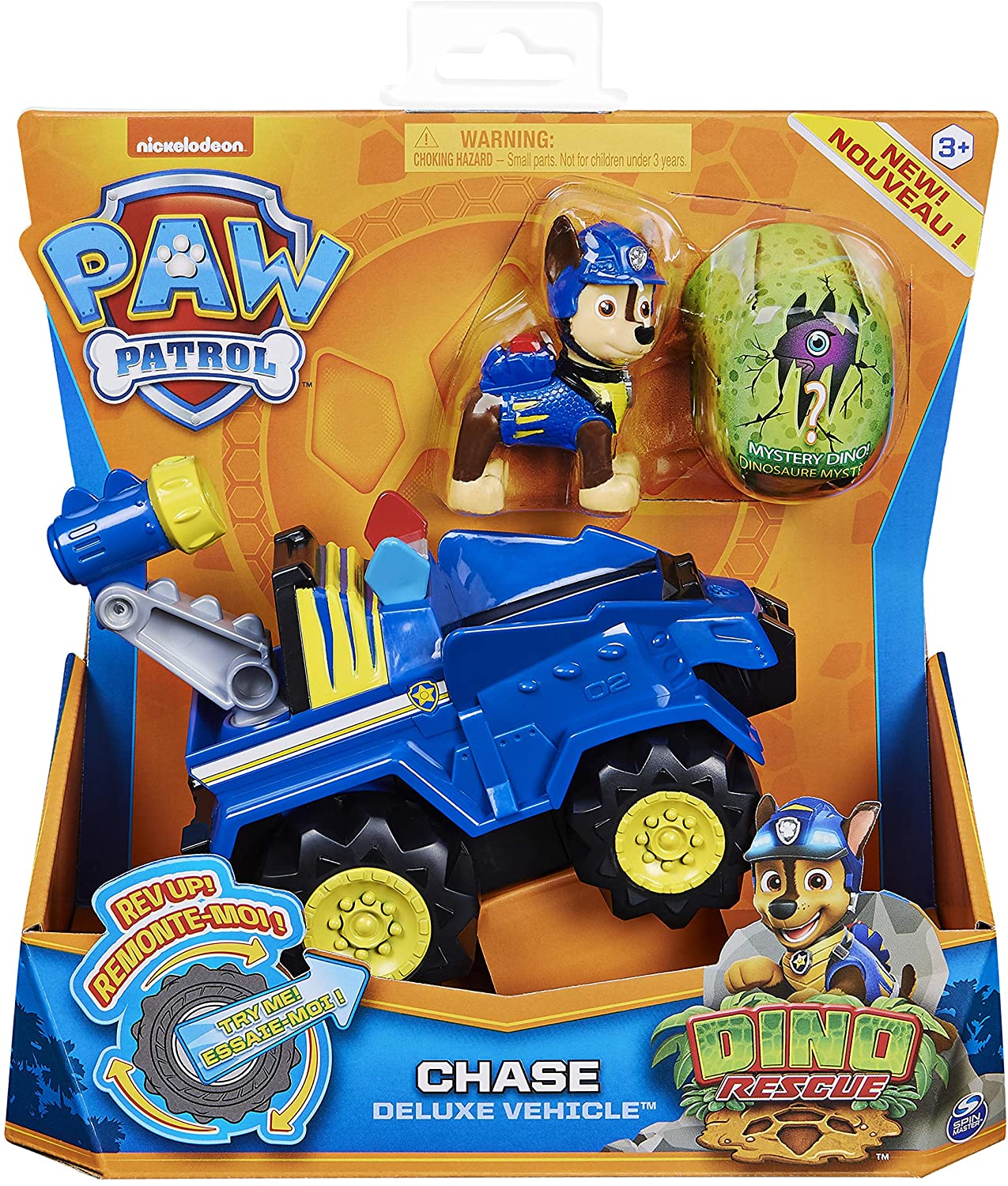 Retrouve les véhicules de la célèbre série TV Paw Patrol, La Pat'Patrouille sur le thème Dino Rescue. Véhicule avec friction d'environ 15 cm de long avec sons réalistes. Coffret comprenant 2 figurines : un chiot de la Pat' Patrouille (Chase) et une figurine dinosaure mystère pour partir en mission sauvetage.