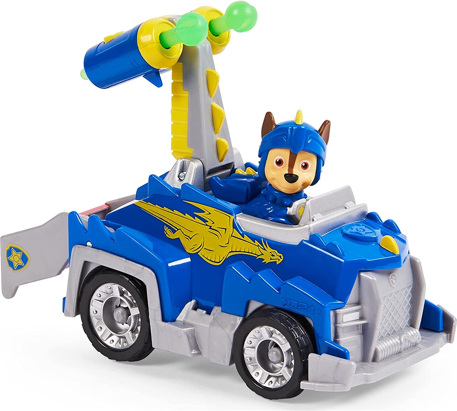 Pat Patrouille Knights Rescue : Chase et sa voiture de police - Figurine chien - véhicule de luxe - Spin master - 20135917