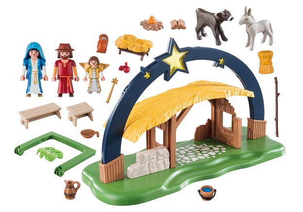 Il est né le divin enfant ! Une grande crèche Playmobil pour se raconter des histoires de Noël en famille avec des personnages et des animaux qui s'attroupent autour de l'enfant Jésus. En avant Noël !