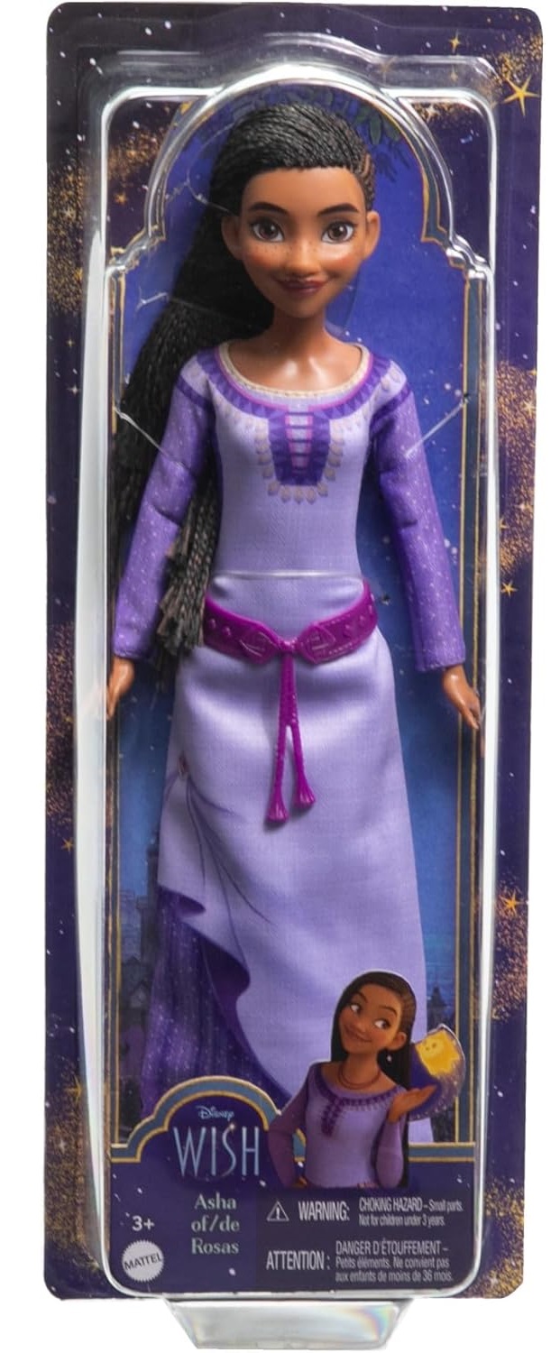 Avec la poupée Asha du Royaume de Rosas, inspirée du personnage de Wish, la magie et l’âme du merveilleux film d’animation musical prennent vie ! La poupée est vêtue d’une tenue amovible et est accompagnée d’accessoires.