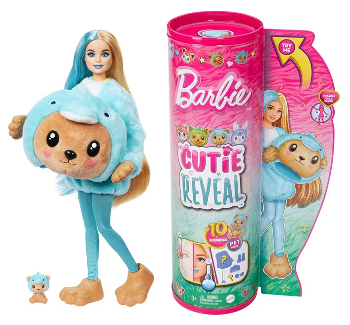 Poupée Barbie Cutie Reveal Ourson Dauphin 10 surprises - Costume peluche animal - Mattel - HRK25