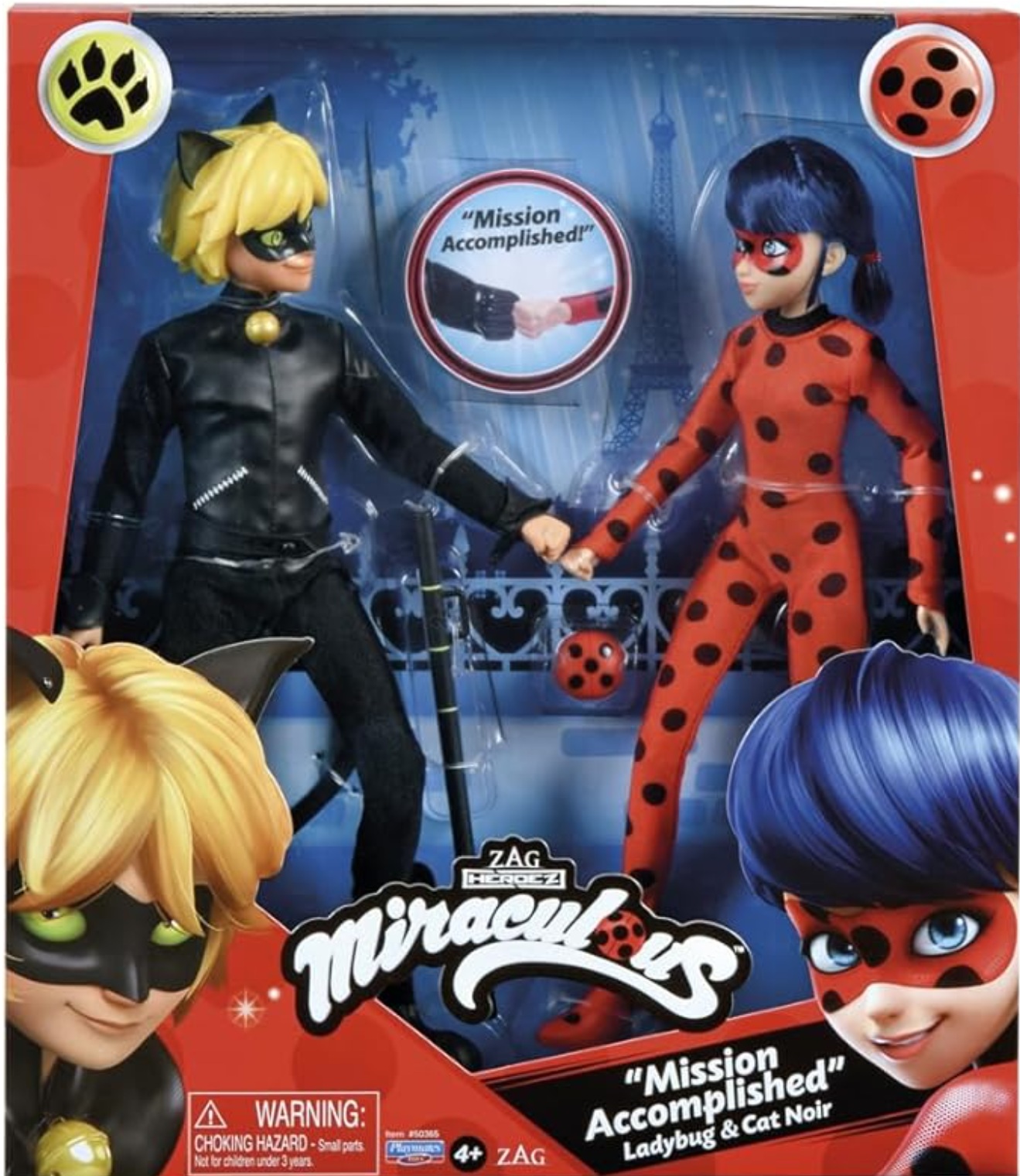 Recréez les aventures de la série Miraculous avec Ladybug et Chat Noir. Elles sont accompagnées de leur fidèles compagnons de 2 accessoires