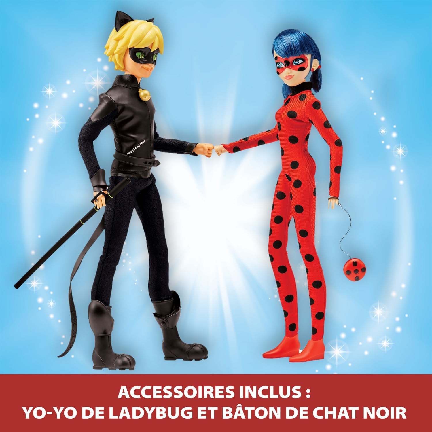 Poupée Miraculous : Ladybug + Chat Noir 26 cm + 2 accessoires - Poupée mannequin articulée - Adrien et Marinette - Bandai - P50365