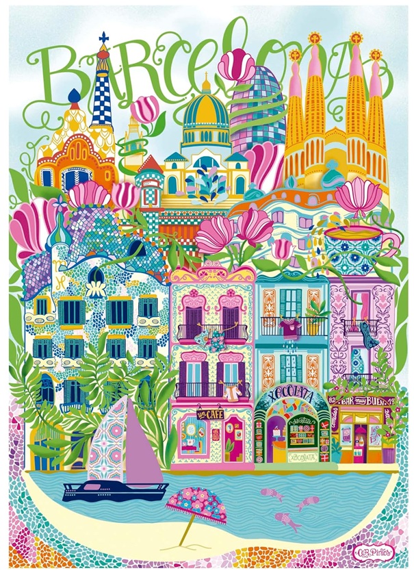 Puzzle Barcelone illustré, Car Pintos 1000 pieces - Illustration & Artiste, Espagne, Europe - Educa - 20557