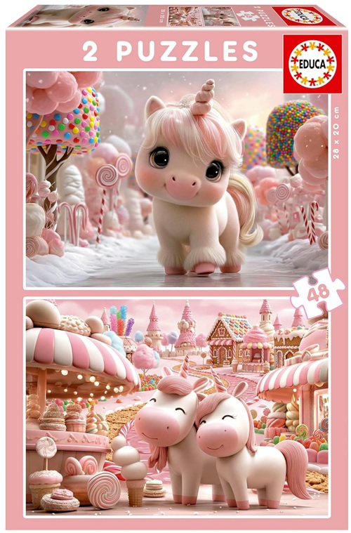 Puzzle Douces licornes rose au pays des bonbons 2 x 48 pièces - Monde Enchanté, magique - Educa - 20504