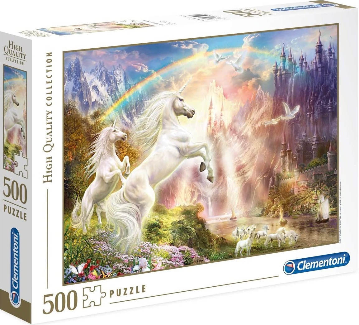 Puzzle Licorne Banche et Château avec un Arc en Ciel 500 pièces - Collection paysage - Clementoni - 35054