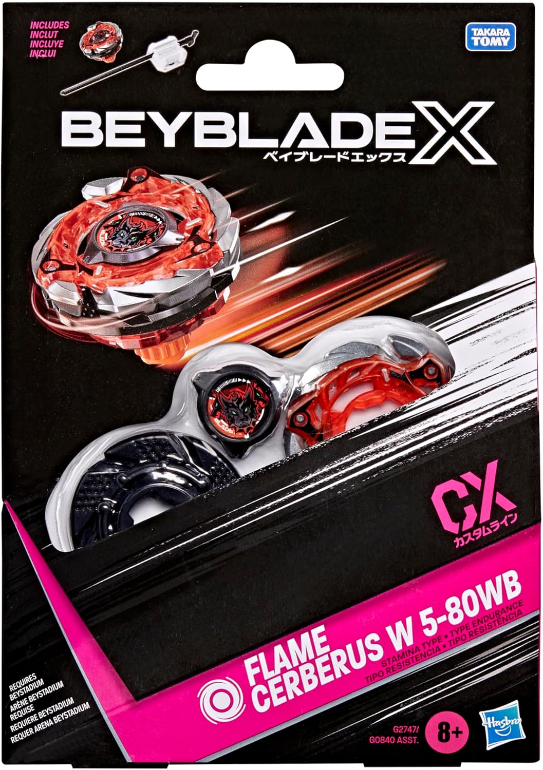 Toupie Beyblade x Flame Cerberus W 5-80WB CX - Type Endurance - Pack toupie et lanceur - Hasbro G2747