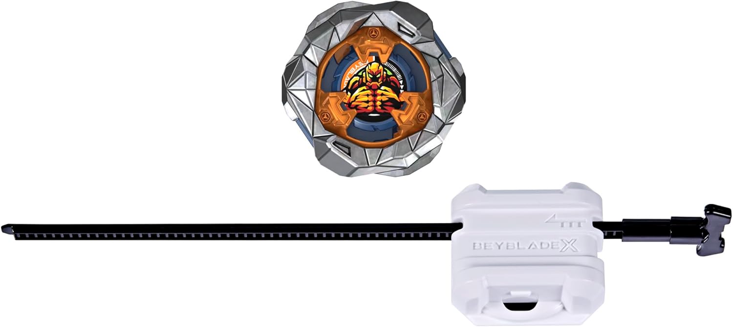 On peut vivre le frisson de la prochaine génération d'arènes, de lanceurs et de toupies Beyblade avec le Starter Pack Beyblade X Rock Golem 1-60UN UX qui inclut une toupie à rotation droite de type défense et un lanceur.
