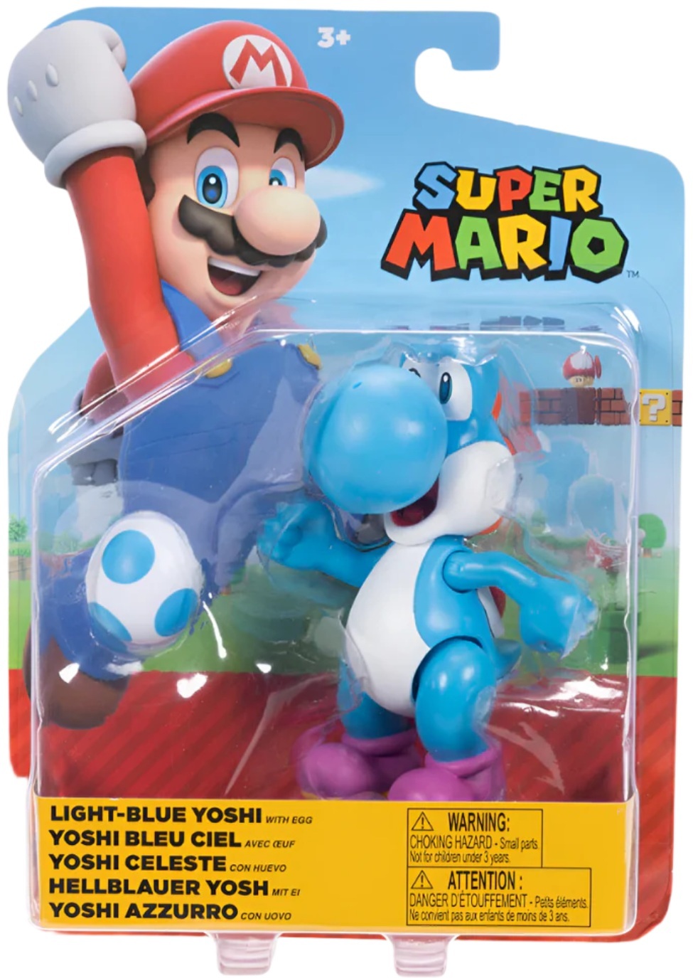 Yoshi Bleu Ciel avec Oeuf : Figurine Super Mario 11 cm - Personnage