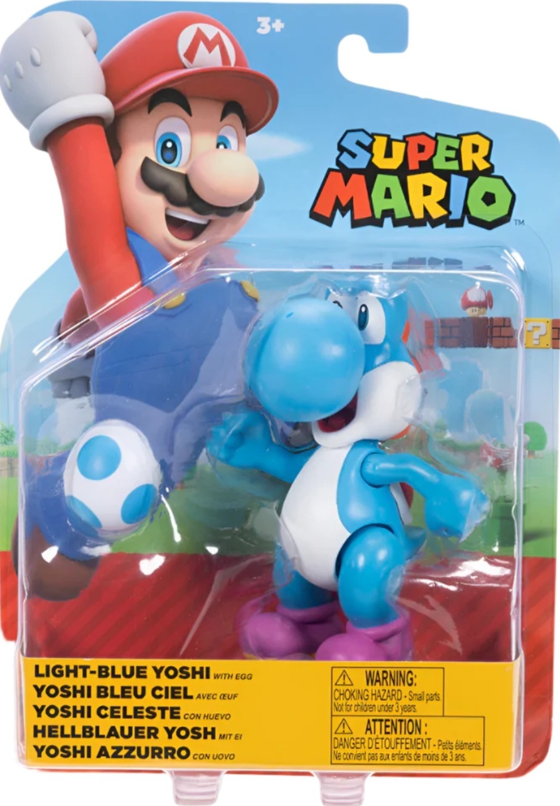 Yoshi Bleu Ciel avec Oeuf : Figurine Super Mario 11 cm - Personnage
